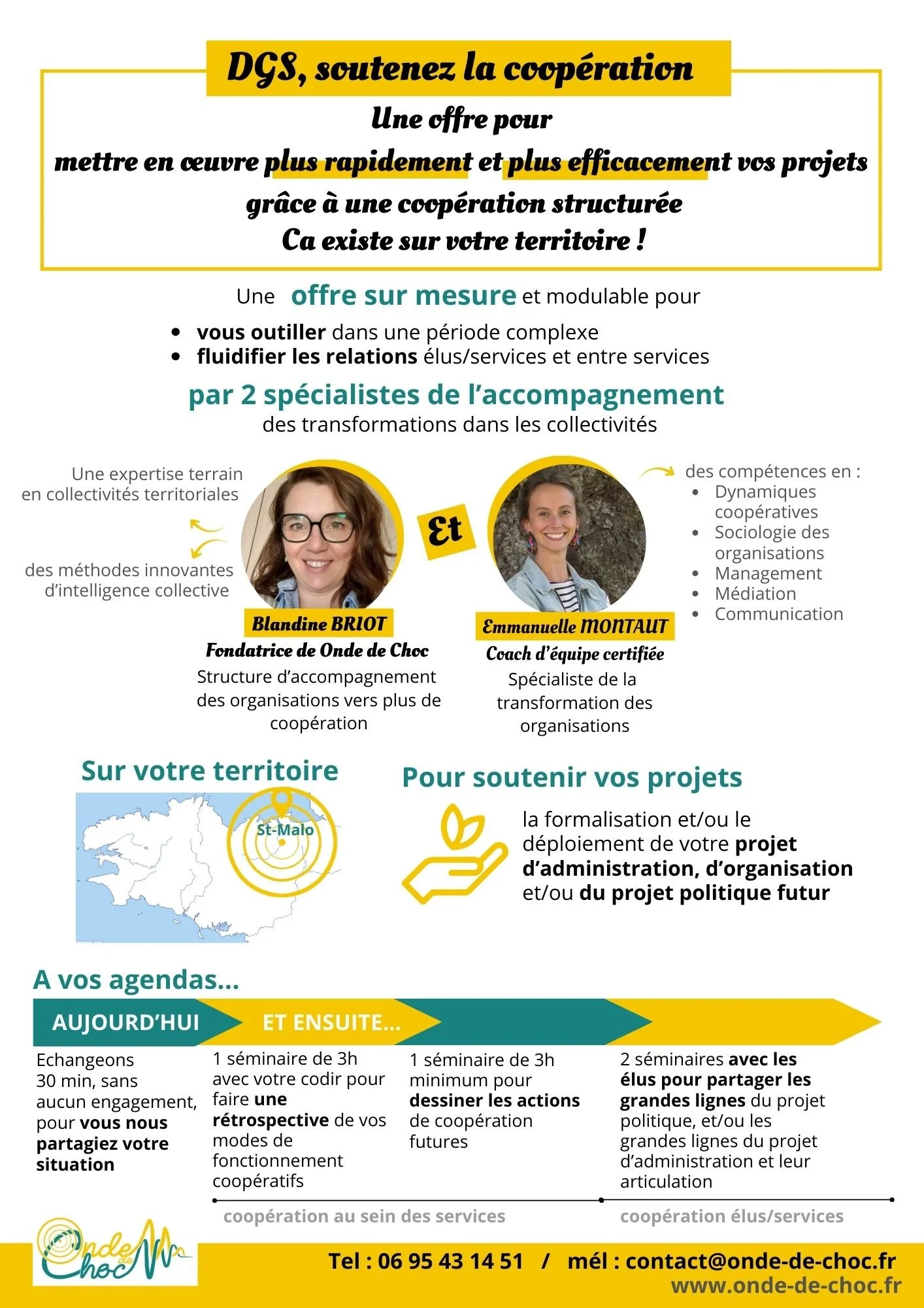 Nous accompagnons les DGS dans la construction de relations de qualité au sein de leurs équipes et entre leurs équipes et l’équipe élue, afin de déployer les nouveaux projets de manière plus efficace et qualitative.
